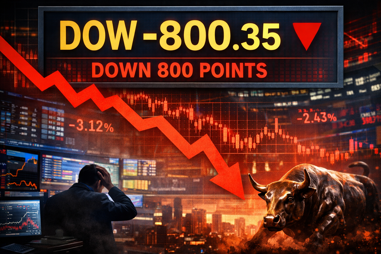 All three major U.S. indexes moved lower. The Dow Jones Industrial Average dropped roughly 800 points, a decline of about 1.6 percent. The Nasdaq fell around 1.3 percent, while the S&P 500 slid approximately 1.1 percent. The pullback erased part of last week’s gains, when equities had staged a modest rebound and the Nasdaq ended a five week losing streak.